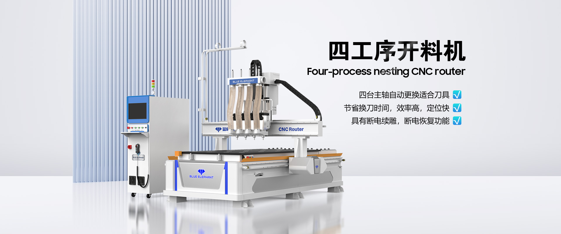 藍(lán)象數(shù)控(BLUE ELEPHANT)是一家自動(dòng)化木工設(shè)備及數(shù)控設(shè)備研發(fā)、制造、銷(xiāo)售、售后服務(wù)于一體的高新技術(shù)企業(yè),為客戶(hù)量身打造個(gè)性化需求的自動(dòng)化設(shè)備解決方案。主營(yíng)全自動(dòng)封邊機(jī)、板式家具生產(chǎn)線(xiàn)、數(shù)控開(kāi)料機(jī)、木工開(kāi)料機(jī)、數(shù)控排鉆設(shè)備等產(chǎn)品。