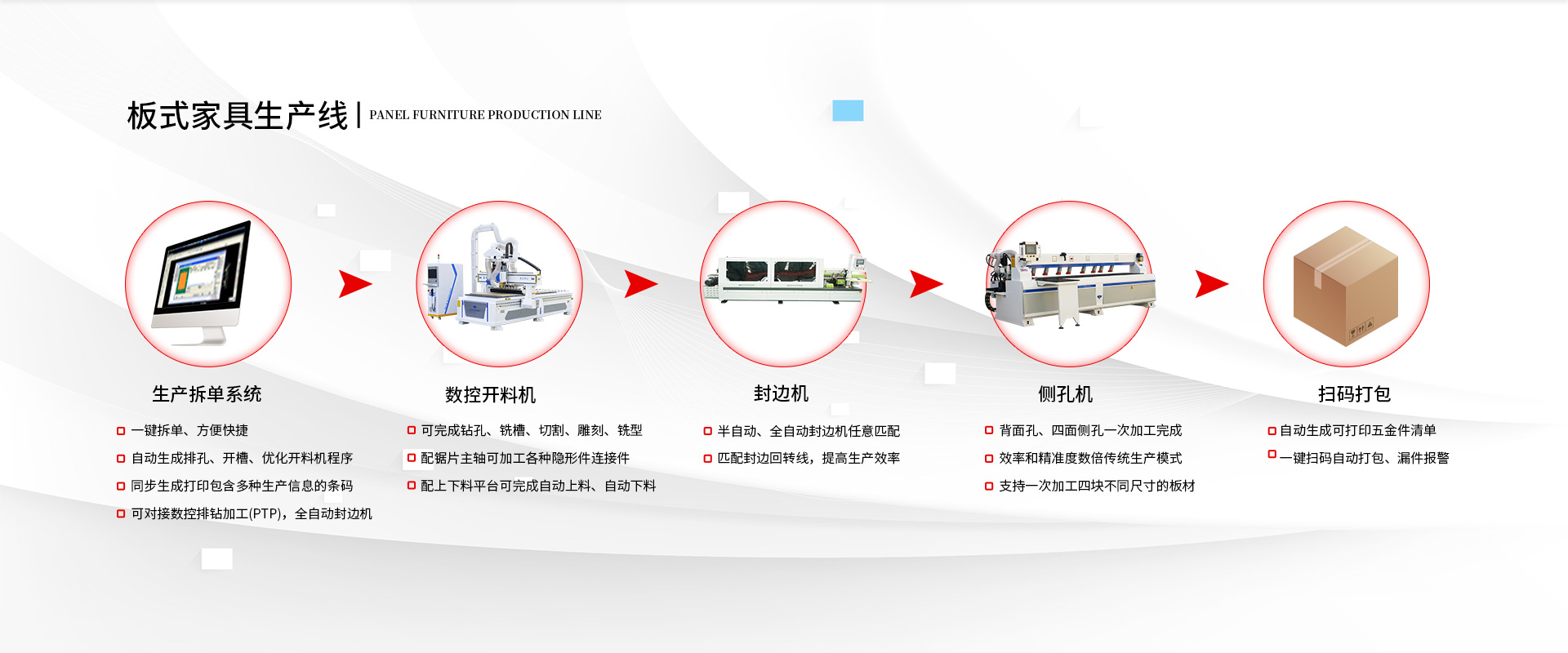 作為一家數(shù)控機(jī)械設(shè)備廠(chǎng)家,我們十幾年來(lái)一直致力于推動(dòng)板式家具加工行業(yè)的自動(dòng)化,智能化和數(shù)字化,力求用專(zhuān)業(yè),簡(jiǎn)潔的設(shè)計(jì)理念來(lái)滿(mǎn)足家具生產(chǎn)的各種需求。 >>